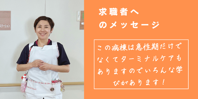 この病棟は急性期だけでなくてターミナルケアもありますのでいろんな学びがあります。